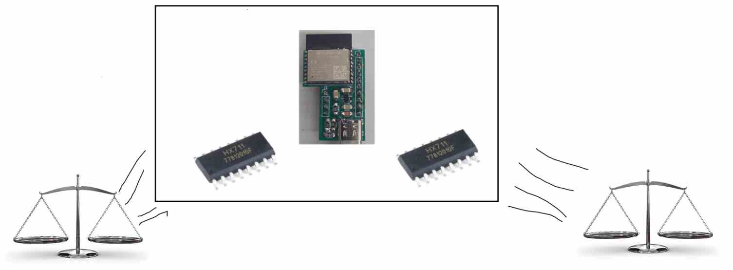 I want it to be like this, where the hx711 and microcontroller are soldered together, so that I only need half the wires risking getting caught on stuff