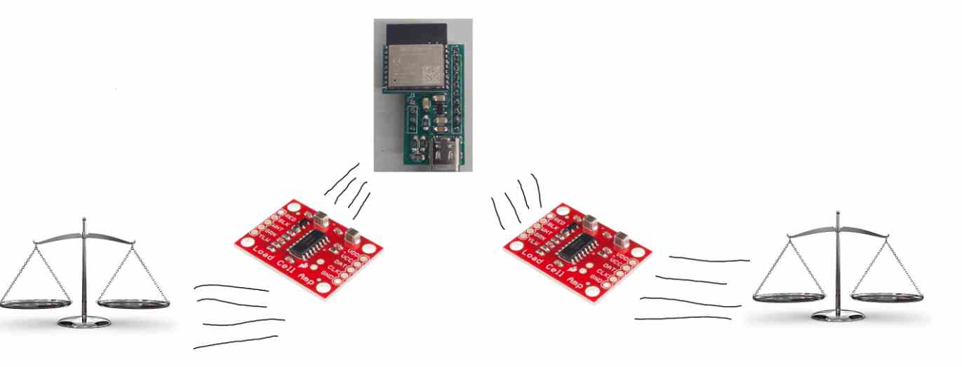 I already have 2 separating working hx711 boards. But I want to have 2 scales wired up to one microcontroller, which causes me to need 16 total wires, 8 from the microcontroller to the hx711s, and 8 more from the hx711 to the scales.