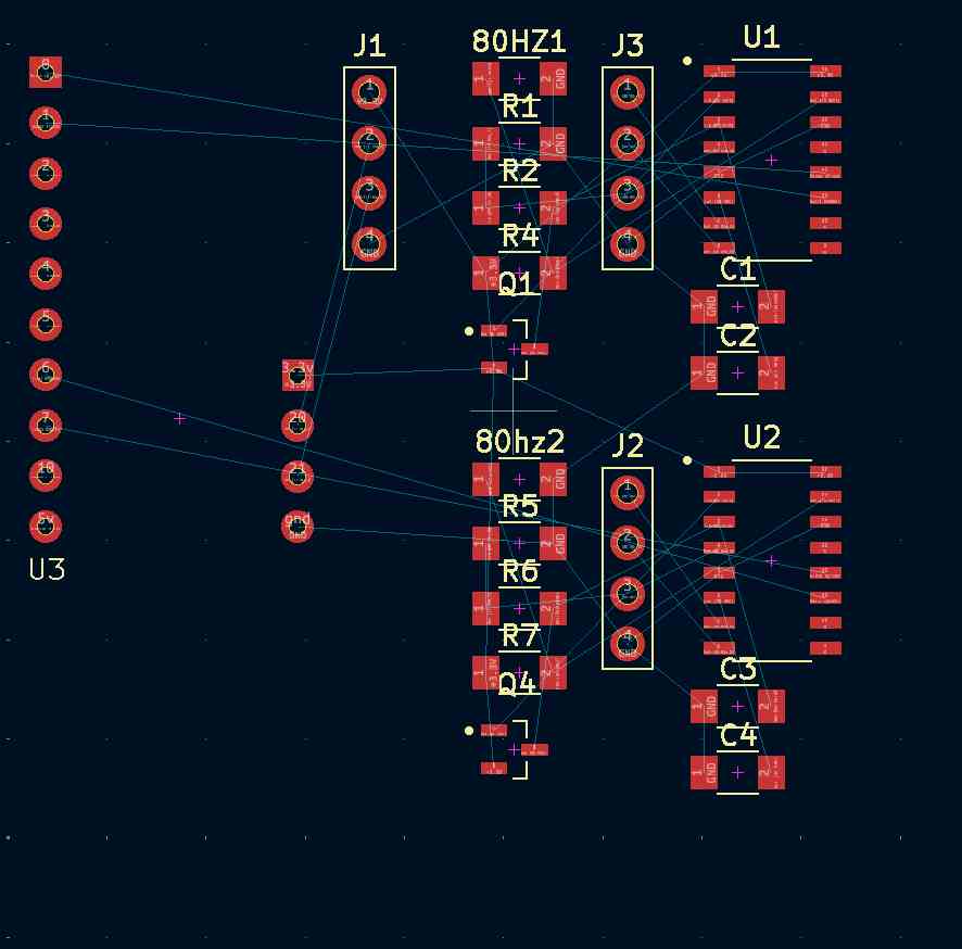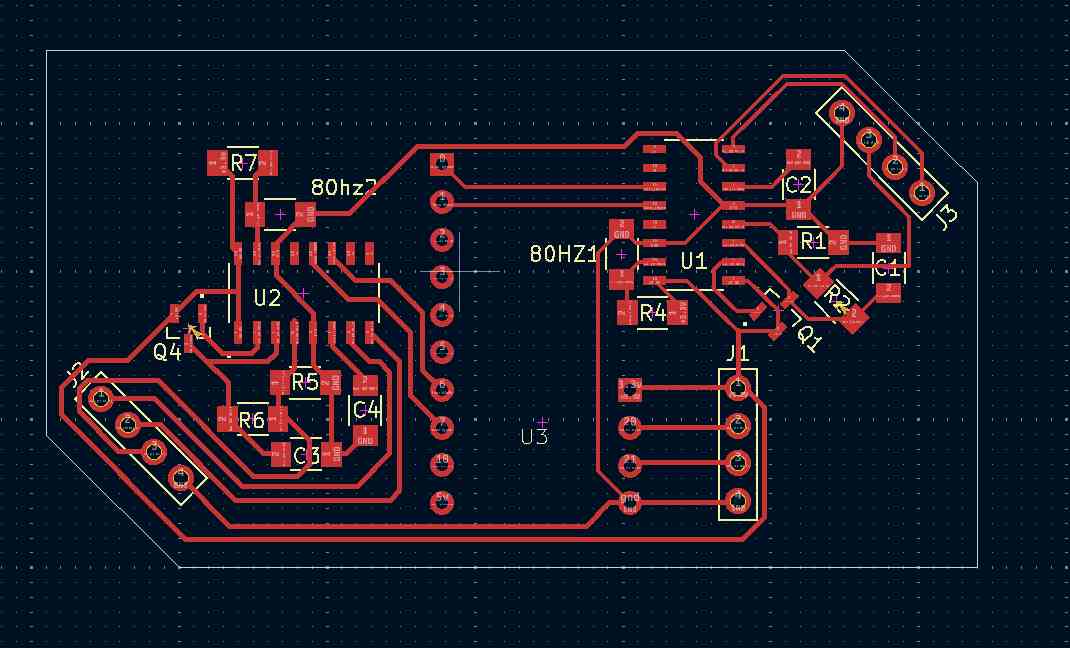 On my first design, I tried compacting the hx711 and its components as close as possible together. However, in doing this I realized that it would be impossible for every component to get where it needed without either vias or a more spaced out approach, leading to it being scrapped after getting to the image below