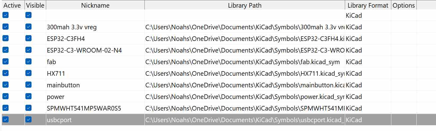 After making the physical design, I went into kicad's symbol editor and created the symbol, following this guide. I made the symbol look as close to the physical board as possible, with those pins being labeled how they are referenced in code, or what they do for the power pins.