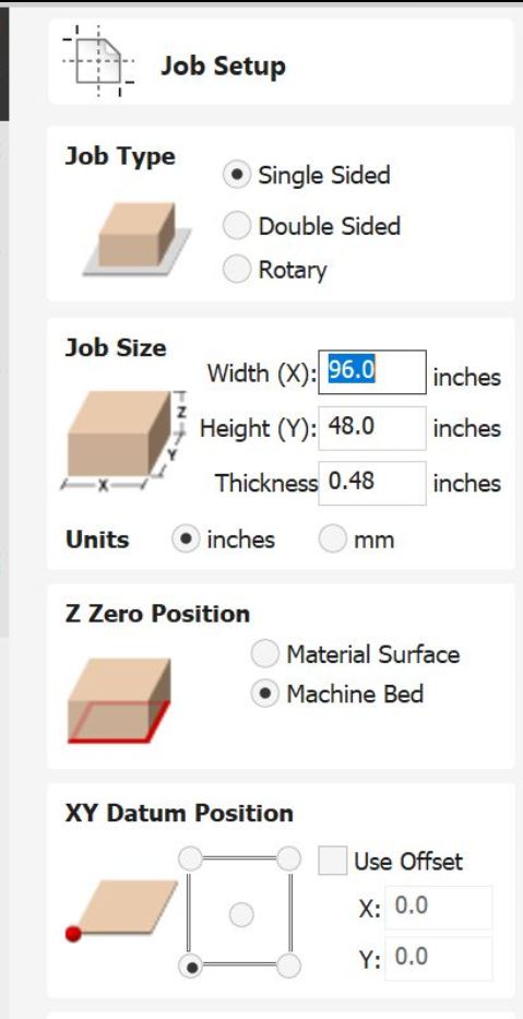 Importing from Fusion to Aspire is very similar to importing from Fusion to Coreldraw, which I talk about in my work for week 2. Essentially, I found a plugin called shaper origin, which allowed me to export sketch profiles into DXF's. I took the profiles from my fusion file, and imported them into aspire using File -> Import. I ran into an issue here, that I didn't notice in till right when I went to cut. The error it introduced here was that it made my offset go from 0,0 (good) to -39.4975, -18.2938. I don't know why it does this, but my instructor just asked me if I checked the offset before I cut and it was at those random numbers. so just if your checking this in the future, beware!!!!!!!!!!!
