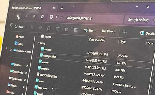 After testing the machine with the original Polargraph firmware and Processing-based controller, we decided to try an alternative approach using GRBL, a firmware commonly used for CNC machines and compatible with G-code workflows.
