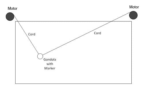 A polargraph is a type of drawing robot that operates using two motors mounted at the top corners of a vertical surface. These motors control the length of cords that hold a pen suspended between them. By adjusting the length of each cord, the pen moves across the drawing area — not along straight X and Y lines, but in elegant arcs defined by polar geometry. It’s often described as an Etch-a-Sketch powered by gravity.