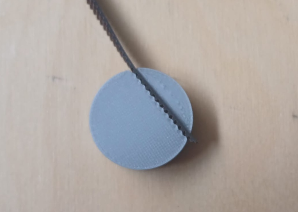 Next, I designed two round belt holders. The groove that holds the belt features a dented pattern, created by drawing a series of triangles to match the tooth profile of a 6 mm wide GT2 timing belt.
