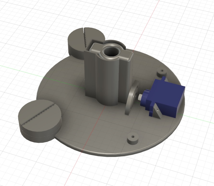 Afterward, I designed and built the pen lifter piece. To do this, I created a gear-shaped outline to cut into the pen lifter piece, allowing it to securely fit onto the motor shaft.