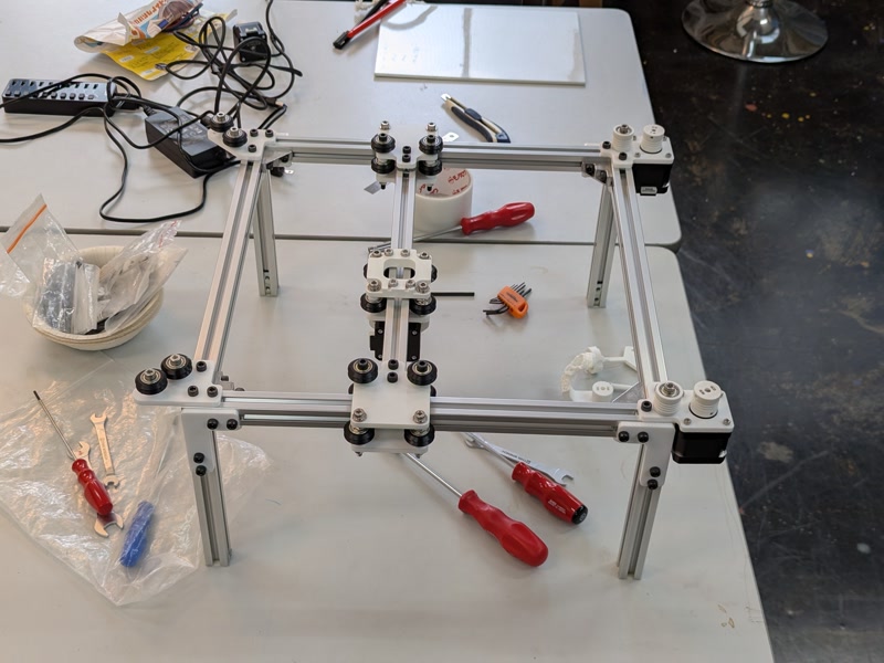 Before building all functions, we quickly assembled the main frame and motors to manually test the CoreXY mechanism.