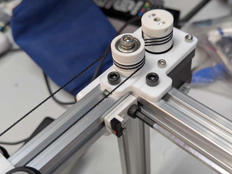 We started with Quentin Bolsee’s UrumbotXY 2.0, adopting the CoreXY mechanism and adding features for Karesansui art. Below are several changes from Urumbot: