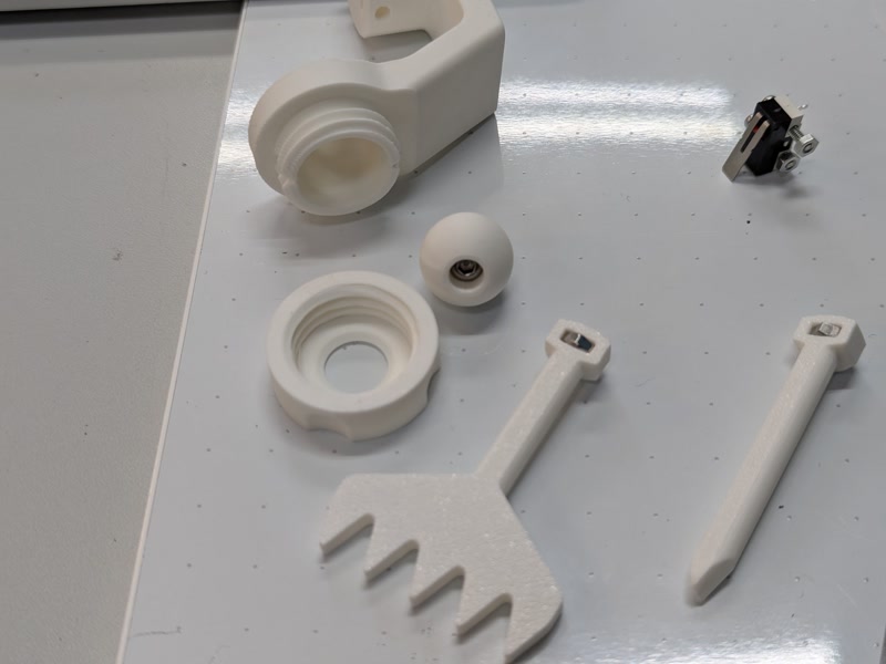 The rake was initially too high and didn’t press into the sand enough, so I added nuts between the ball joint and the rake to lower it.