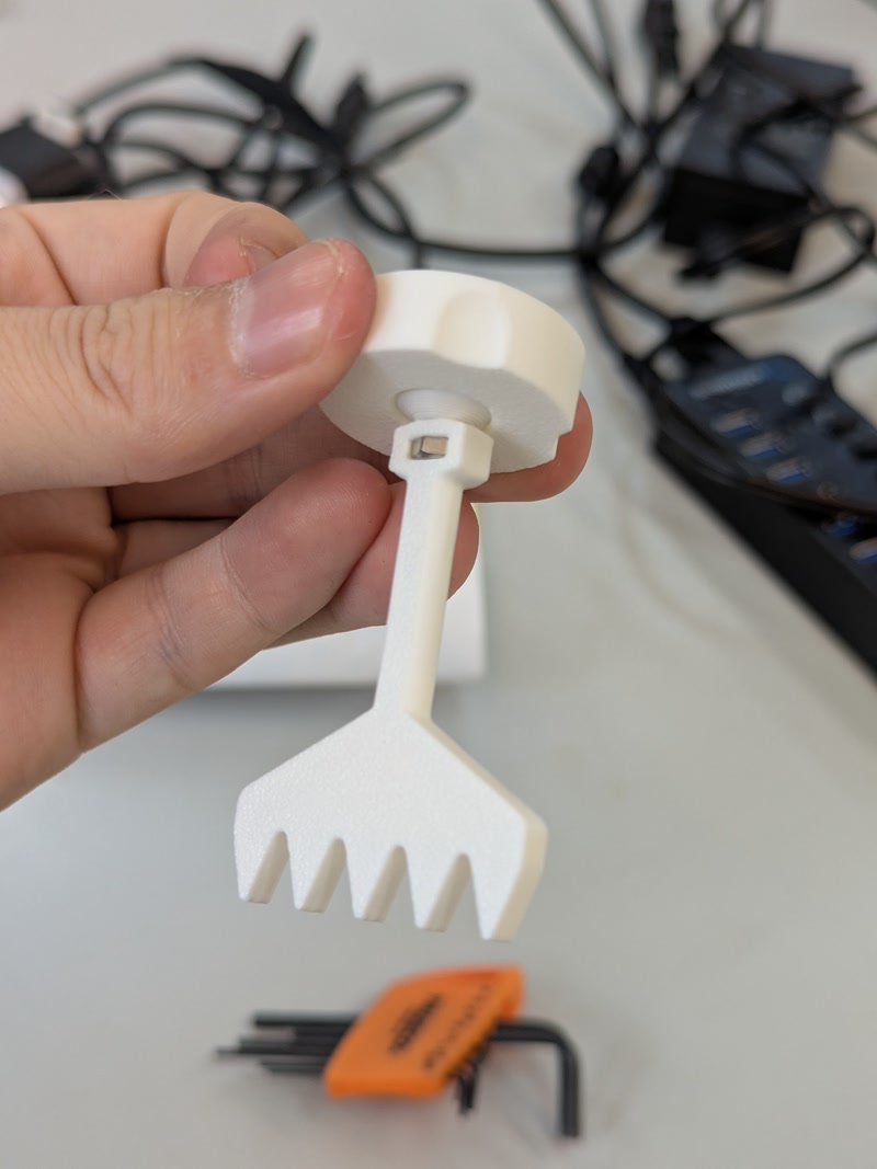 - The rake’s passive rotation is limited by the short distance between its pivot and tip, causing it to lag behind movements. Extending the rake from the axis would improve responsiveness.