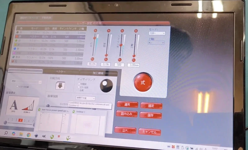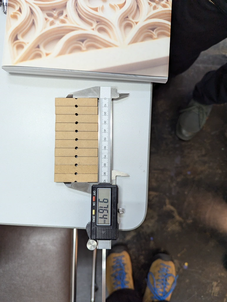 By changing various parameters in the laser cutter and using materials to verify the results, we discovered the optimal parameters for the material used this time. The specific parameters are as follows.