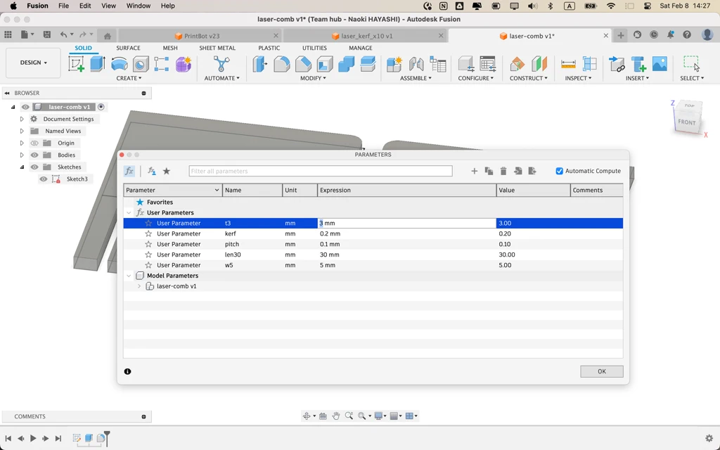 Additionally, to verify the kerf and clearance based on the relationship between the material and the laser, we used designs with different values of kerf and clearance for cutting with the laser cutter. We discovered the optimal kerf and clearance for the material used this time. The specific parameters are as follows.