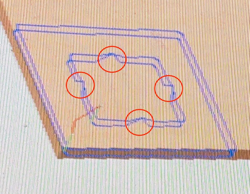 By properly installing the tabs, you can maintain processing accuracy without the cut section shifting. It also prevents the parts from moving and interfering with the tool path, reducing damage to the tool blade and spindle.