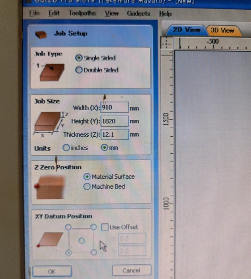 - Input the dimensions of the board you brought in (width: 910mm, height: 1,820mm, thickness: 12mm).