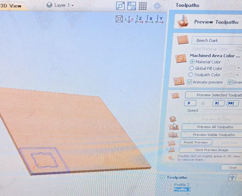- Check the cutting path in the Mach3 preview window.