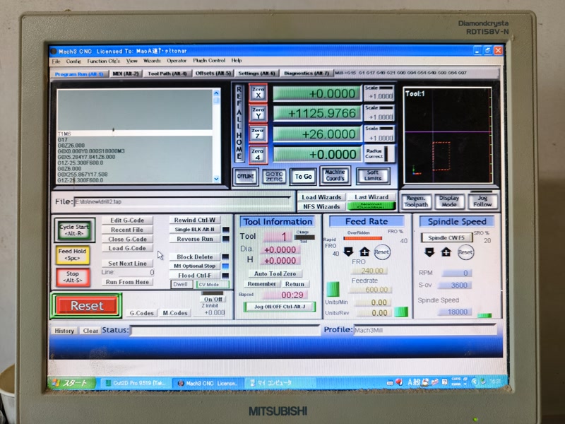 - When processing is complete, press the “Reset” button to initialize the Mach3 status.
