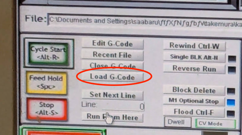 - Specify the G-code file generated by Cut2D and load it into Mach3.