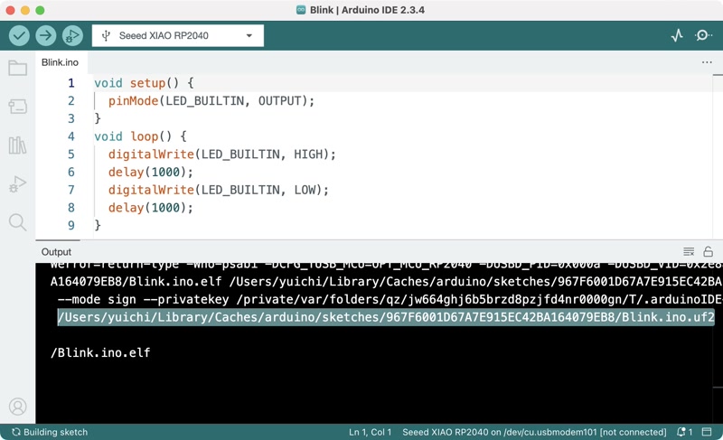 % pwd /Users/yuichi % cd /Users/yuichi/Library/Caches/arduino/sketches/967F6001D67A7E915EC42BA164079EB8 % open .