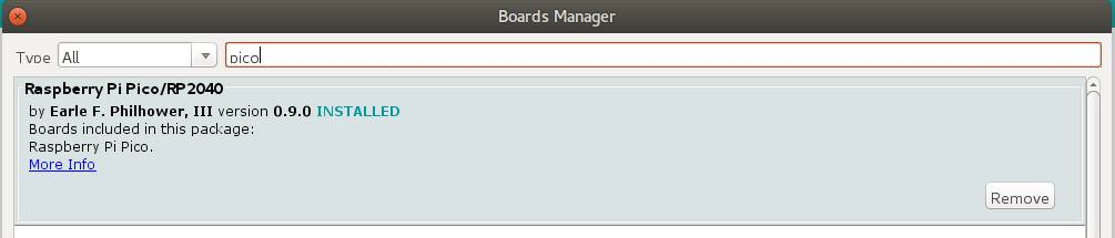 https://github.com/earlephilhower/arduino-pico/releases/download/global/package_rp2040_index.json - Hit OK to close the dialog.