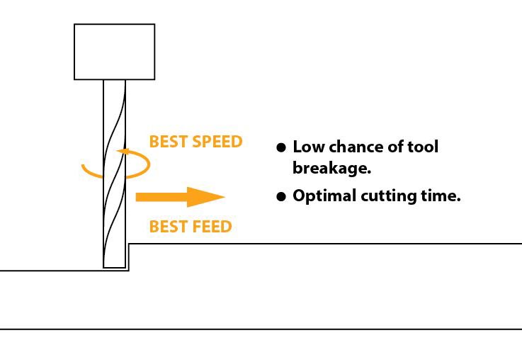 The rate of rotation is called the “speed” and is controlled by how fast the router or spindle turns the cutting tool. Both feed rate and spindle speed will vary based on the material being cut. A general rule of thumb is that you want to move the tool through the material as fast as possible, without sacrificing surface finish. The longer the tool rotates in any one place, the more heat that builds up. Heat is your enemy and can burn your material or radically decrease the life or your cutting tool.Feed rate vs spindle speed: Spindle speed that is too fast paired with a slow feed rate can result in burning or melting. Spindle speed that is too slow paired with a faster feed rate can result in dulling of the cutting edge, deflection of the end mill and possibility of breaking the end mill.