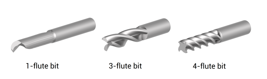 The number of flutes on your router bit impacts the work speed and the surface finish of your product. Having more flutes offers two main advantages. First, it adds to the strength of the bit, which means the bit can be fed into the workpiece faster and work on harder material. Secondly, bits with more flutes tend to give a better surface finish.