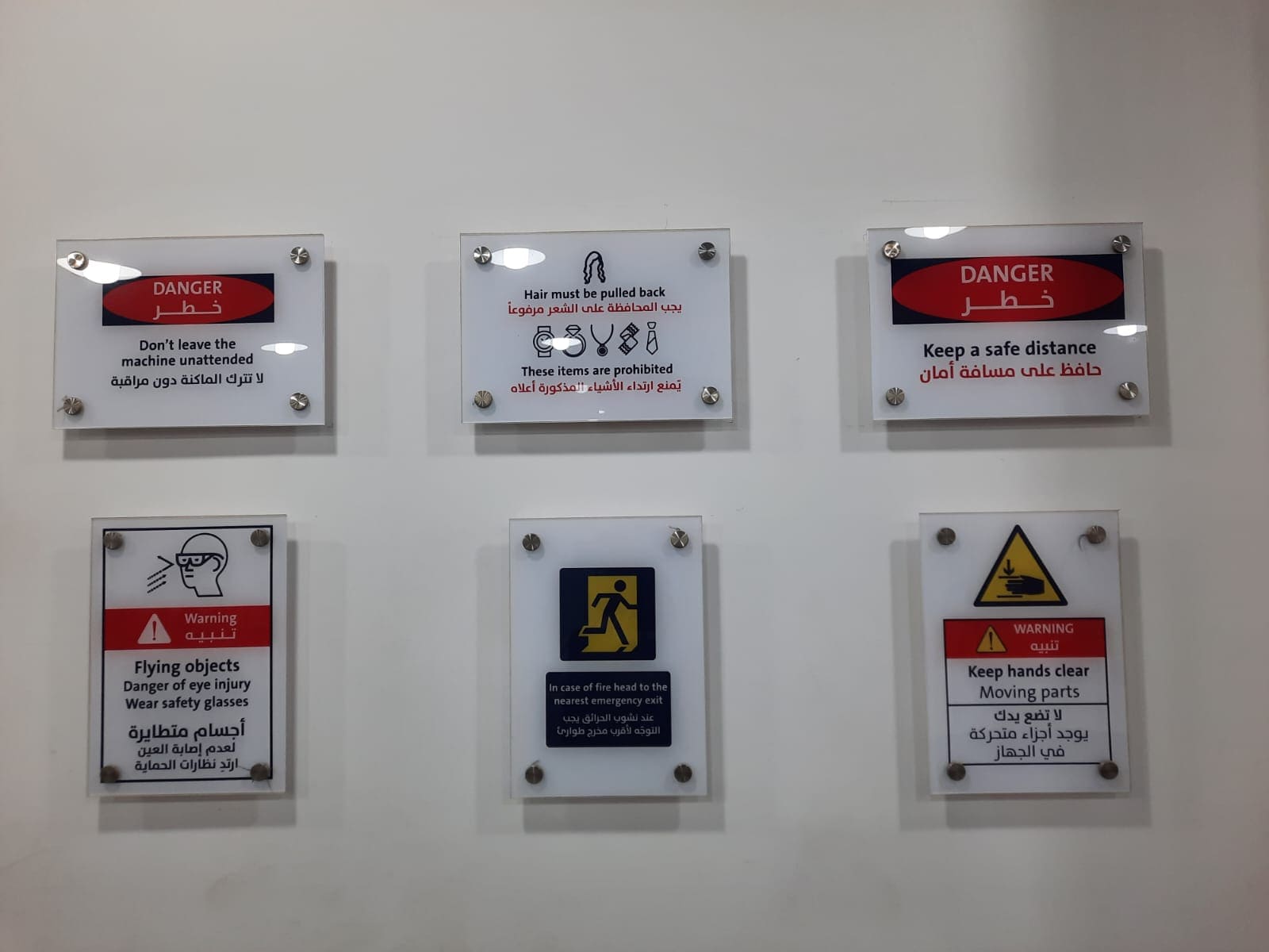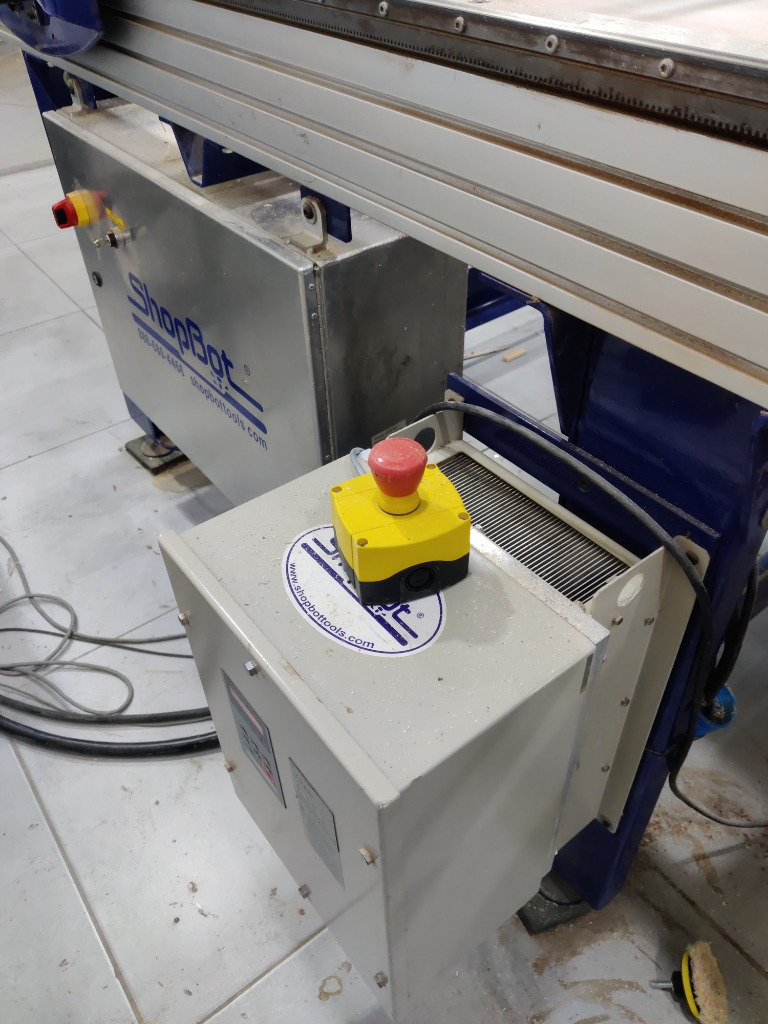 In case of an emergency, press the Emergency Stop (E-stop) Button. Multiple emergency stop buttons are strategically placed around the workshop for quick access.