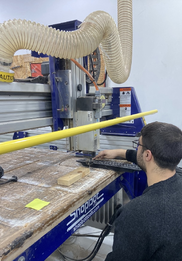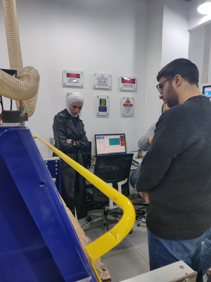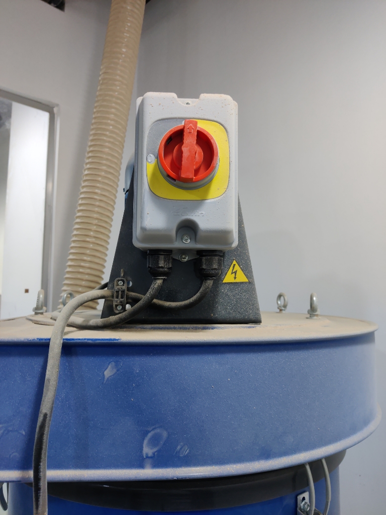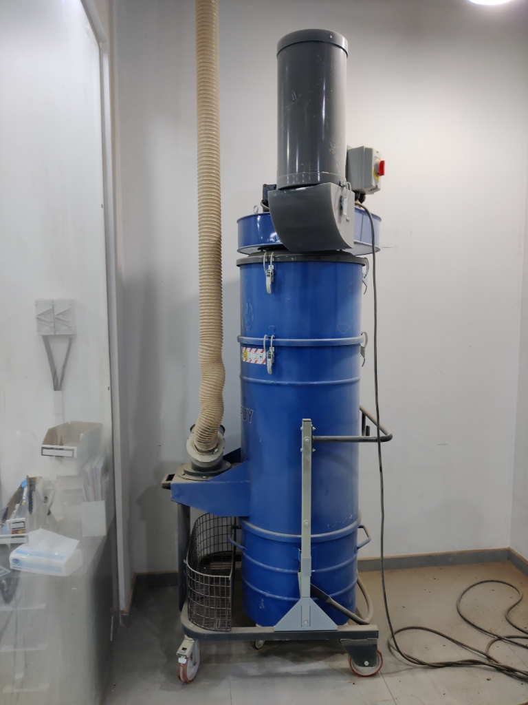 Dust Extraction System (Duct Fan) We learned how to operate the duct fan, which must be turned on before any cutting to prevent dust buildup and ensure clean working conditions.