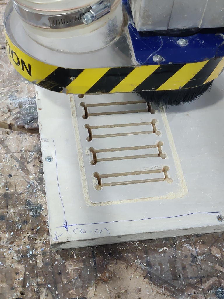 Designed a full-slot-fitting joint to test how parts insert vertically into pockets. Programmed it using CAM with dog bone fillets added for internal corners. After testing a few clearances, found the ideal tolerance for a snug, non-forceful fit.