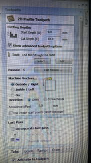 Loaded the file saved from VCarve and verified all toolpaths were correctly assigned.