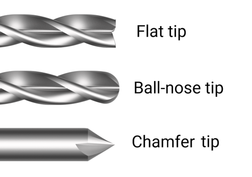 - Ball-Nose Tip: Has a rounded end for smooth finishes.