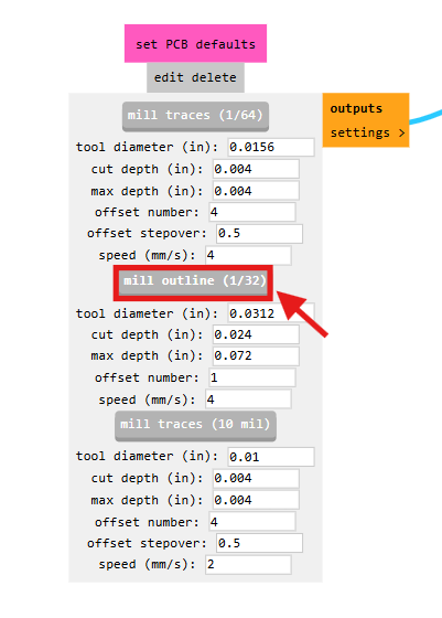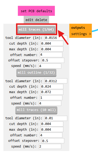 | Trace Cutting | 1/64” End Mill | 1 mm/s | 0.3 mm/s | 0.15 mm |
