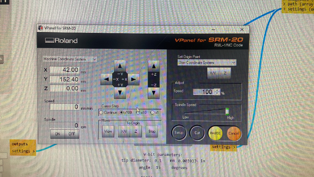 After setting the zero positions, we clicked “Cut”, and the following window appeared: