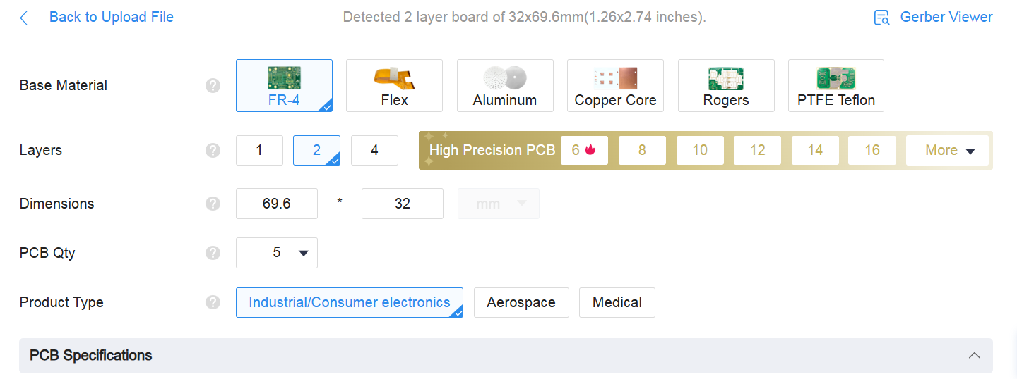 Once logged in, upload your Gerber files that contain the complete PCB design.