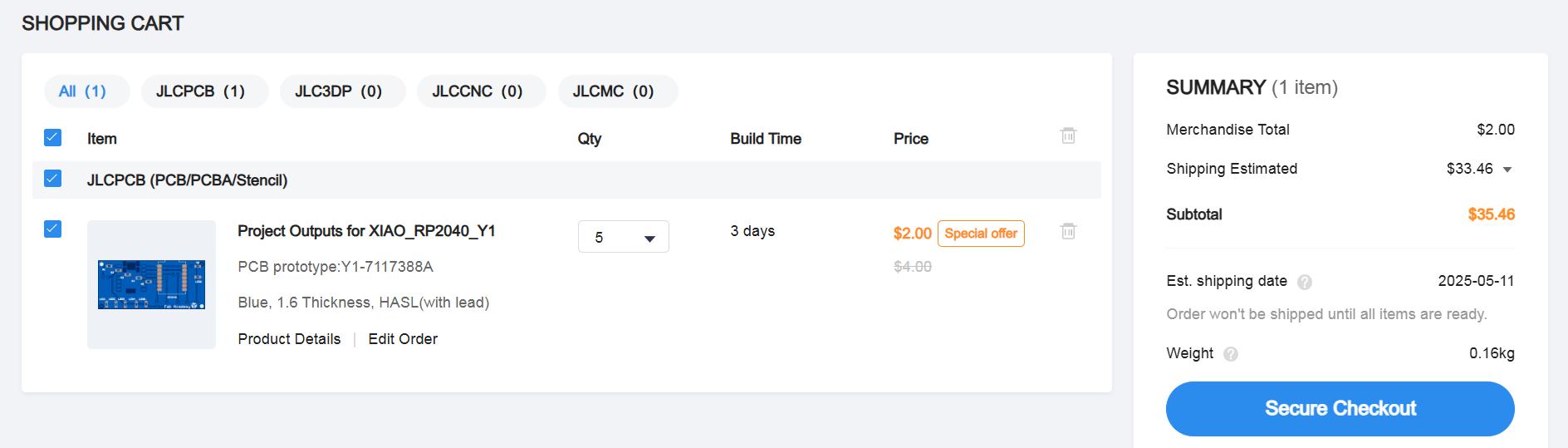 We will use Ghadeer’s XIAO RP2040 Board and submit it to a board house.