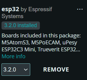 esp32and install “esp32 by Espressif Systems” (install the latest version).