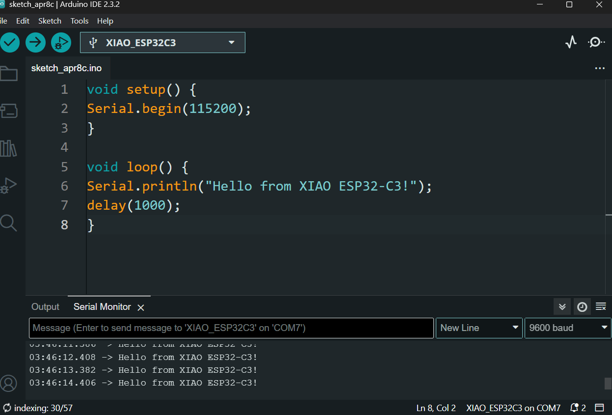 - If the upload fails, double-press the RESET button on the XIAO ESP32-C3.