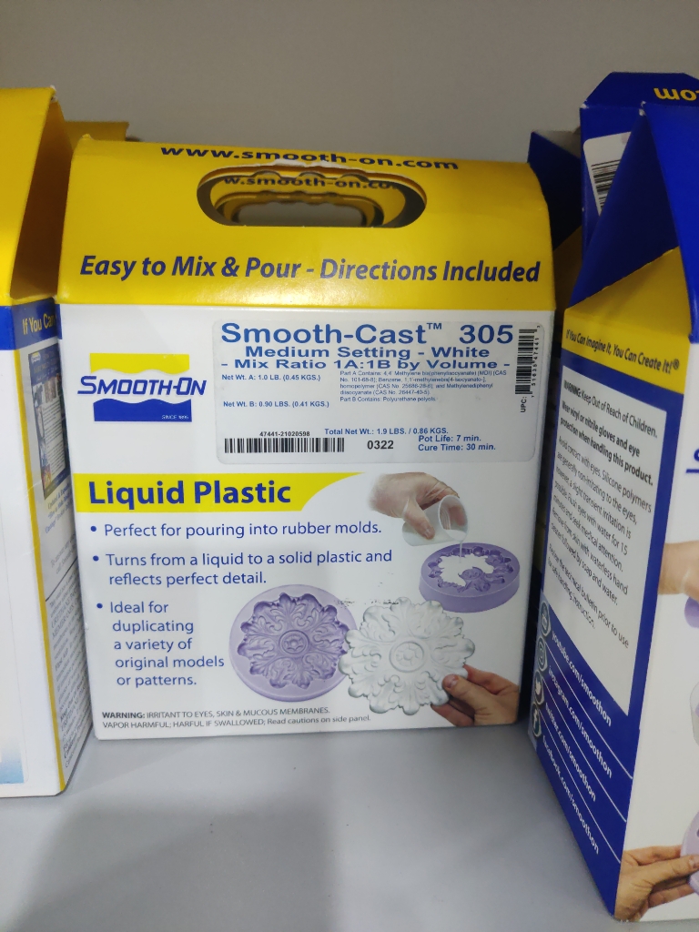 | Smooth-Cast 305 ✅ | Liquid Plastic | 1A:1B Volume | 7 min | 30 min | White | Fast setting, good detail casting |