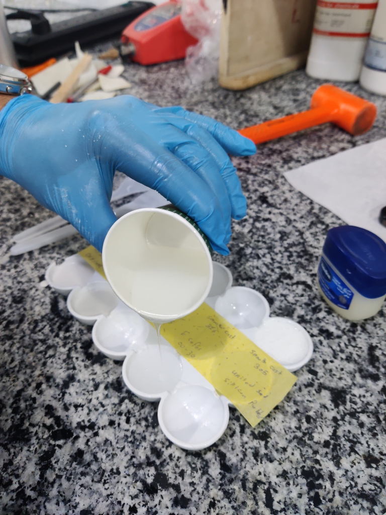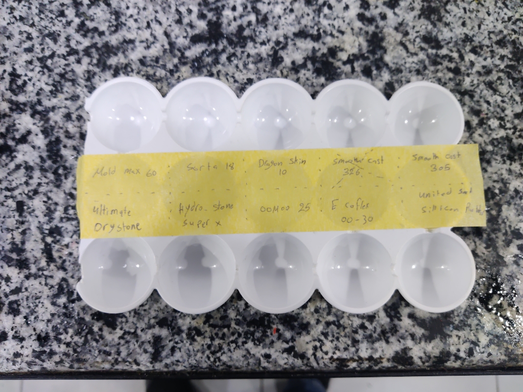 - Gathered and tested 8 types of silicones and liquid plastics available in the lab.