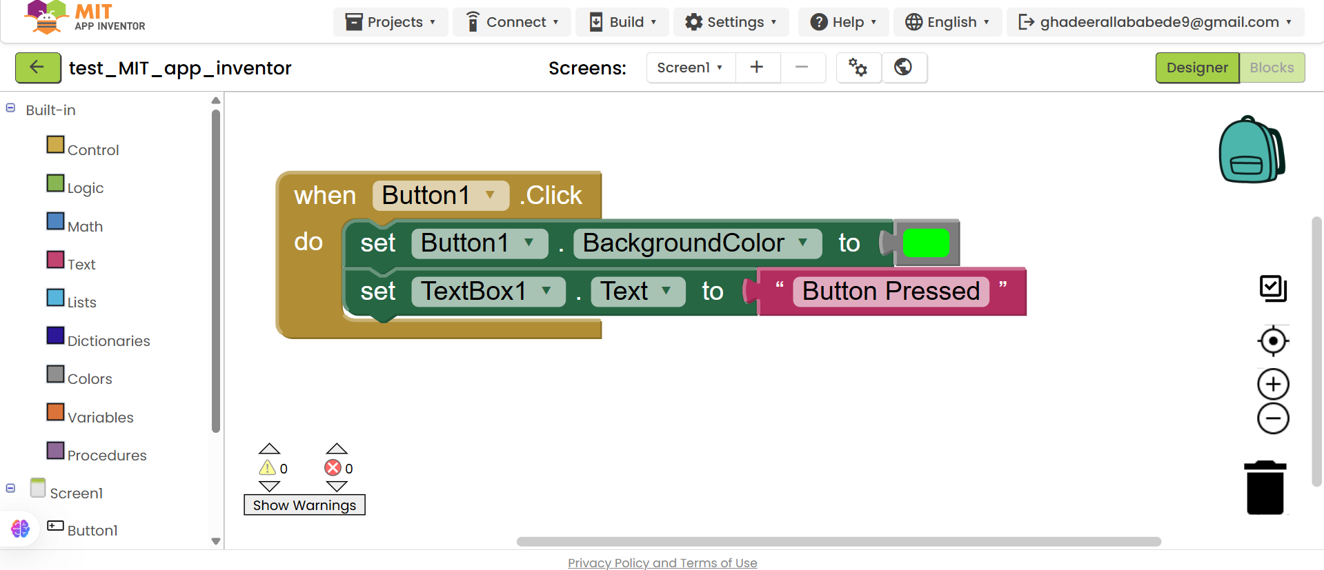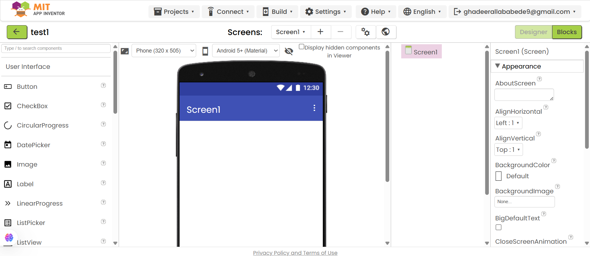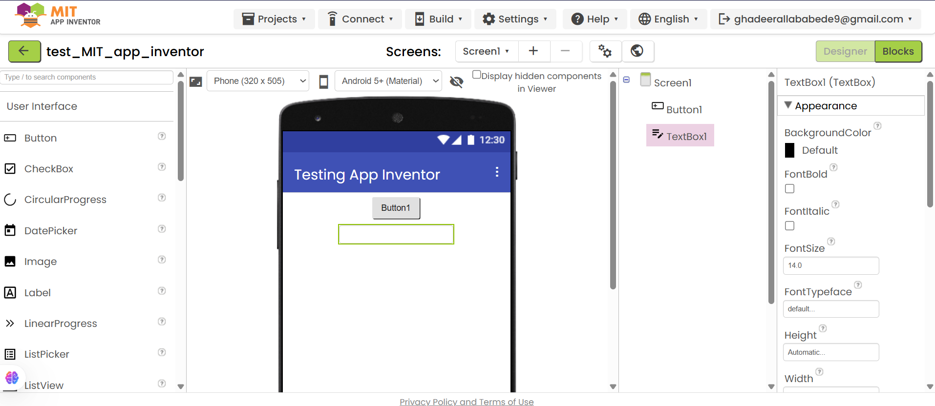 - Built-in components: Buttons, sensors, media, databases, connectivity (Bluetooth, Web), and more.