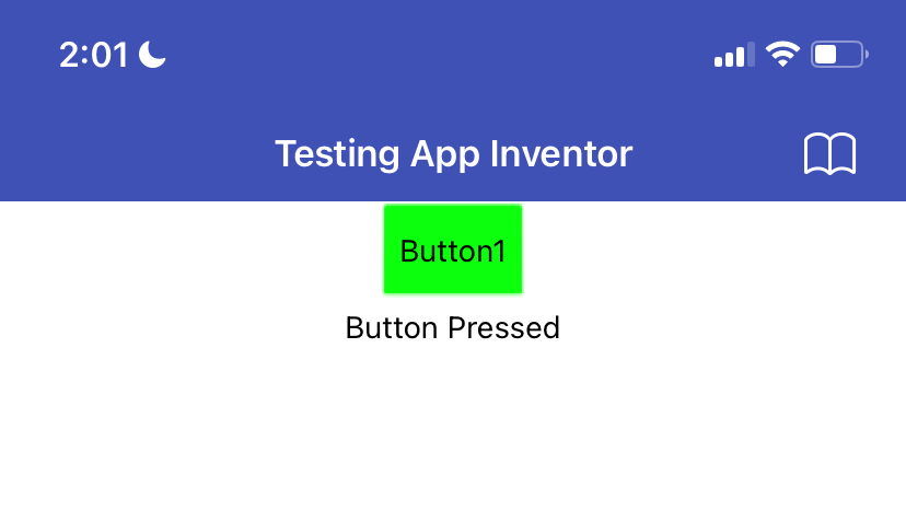 When the button is pressed, it will turn green and display the text “Button Pressed.”