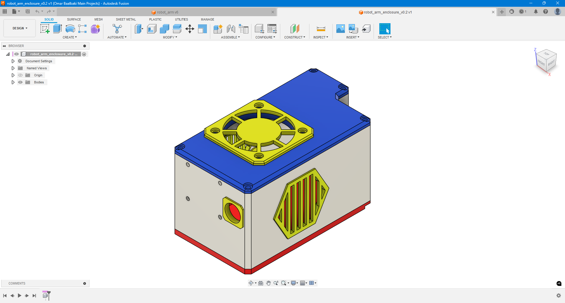 - Modeled parts in Fusion 360.