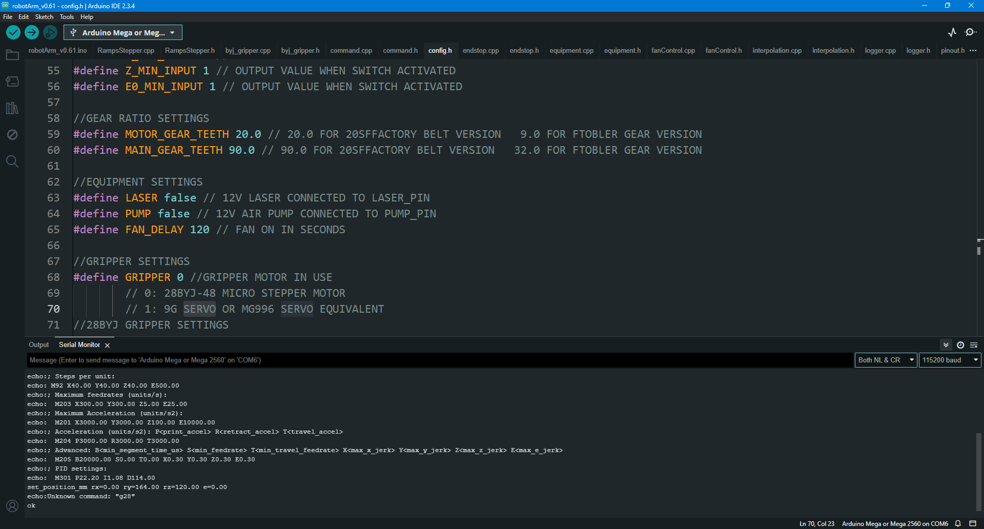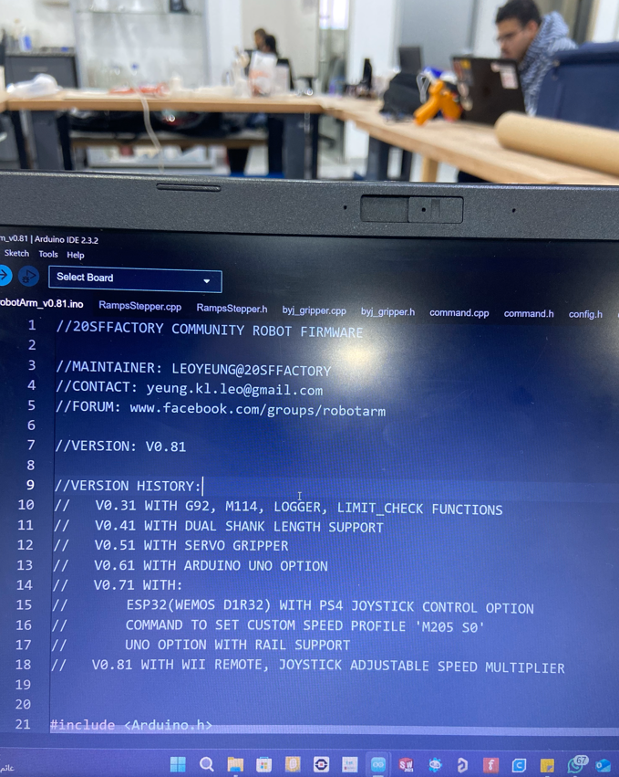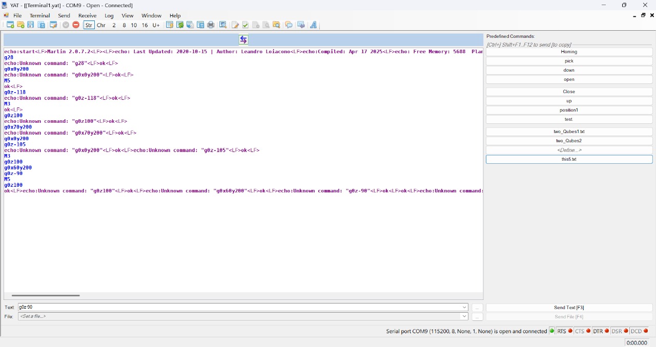 - Flashed Marlin firmware with robot-specific configuration.