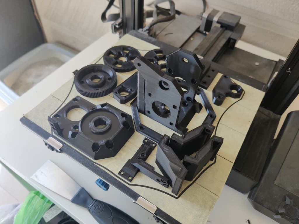 - Printed components in PLA with reinforced infill for stability.