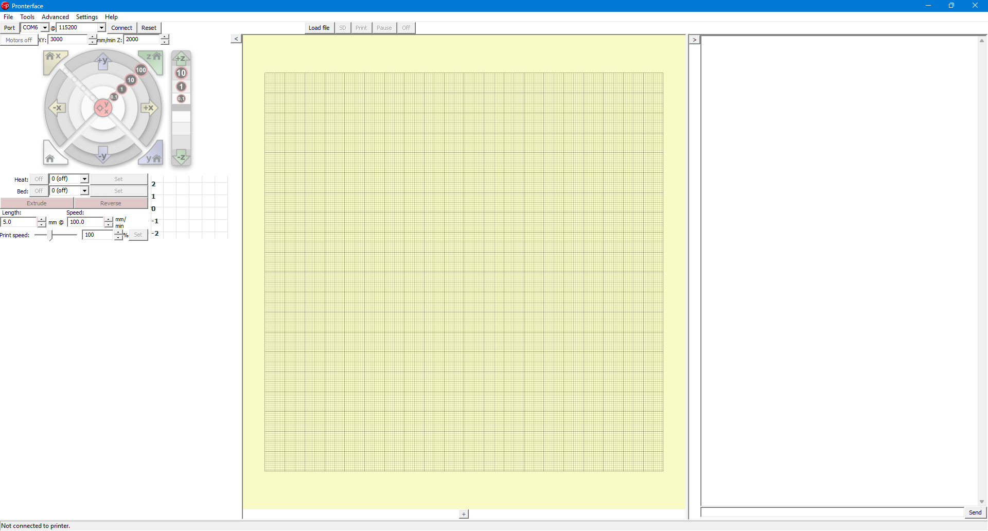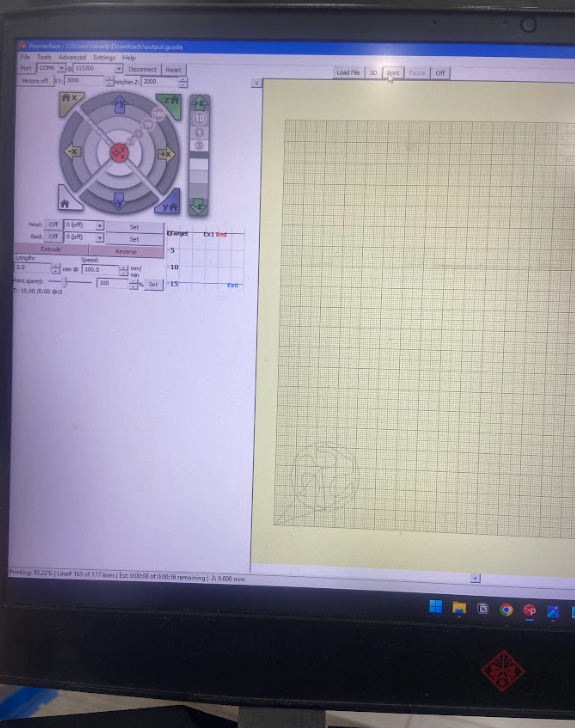 - Used Pronterface to control motion.