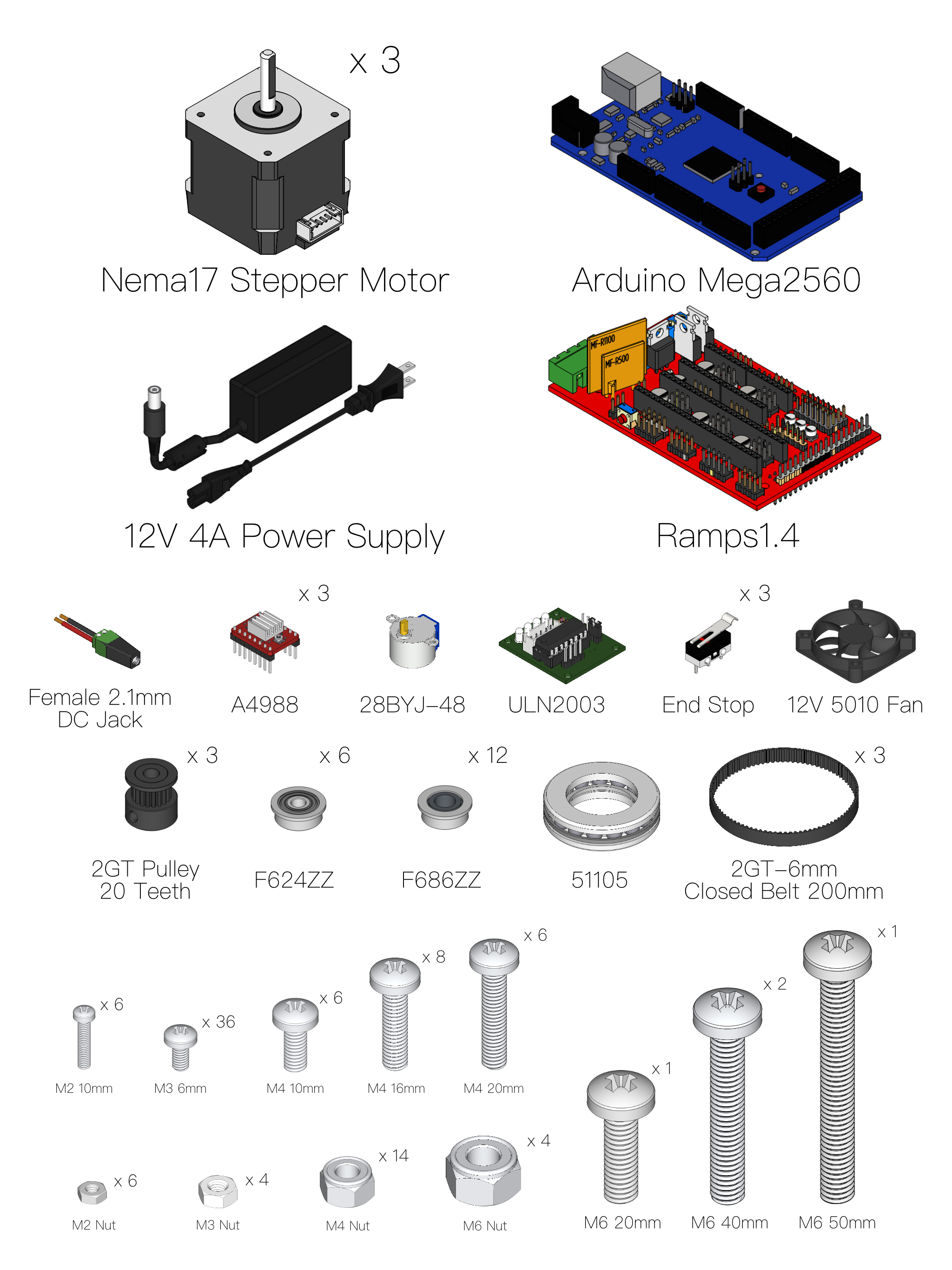 - Purchased required mechanical parts locally: bearings, screws, nuts, washers.