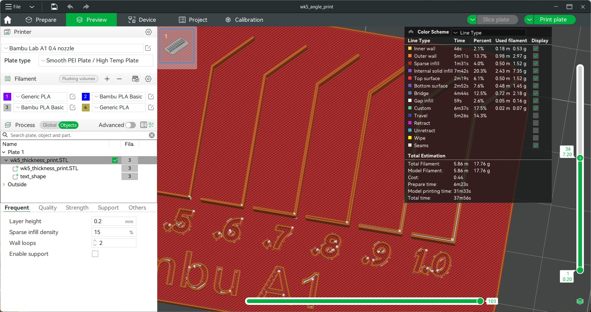 We loaded it into each slicer and they both handled it a little differently. The Bambu slicer would not handle anything less than .5mm thick. Prusa did a little better getting down to 0.1mm, however the actual path for 0.1mm to 0.4mm was exactly the same.