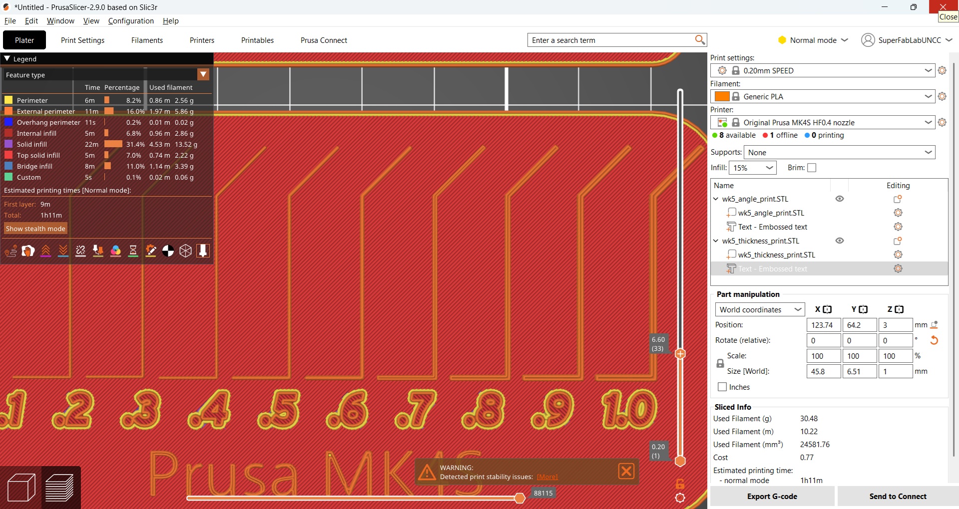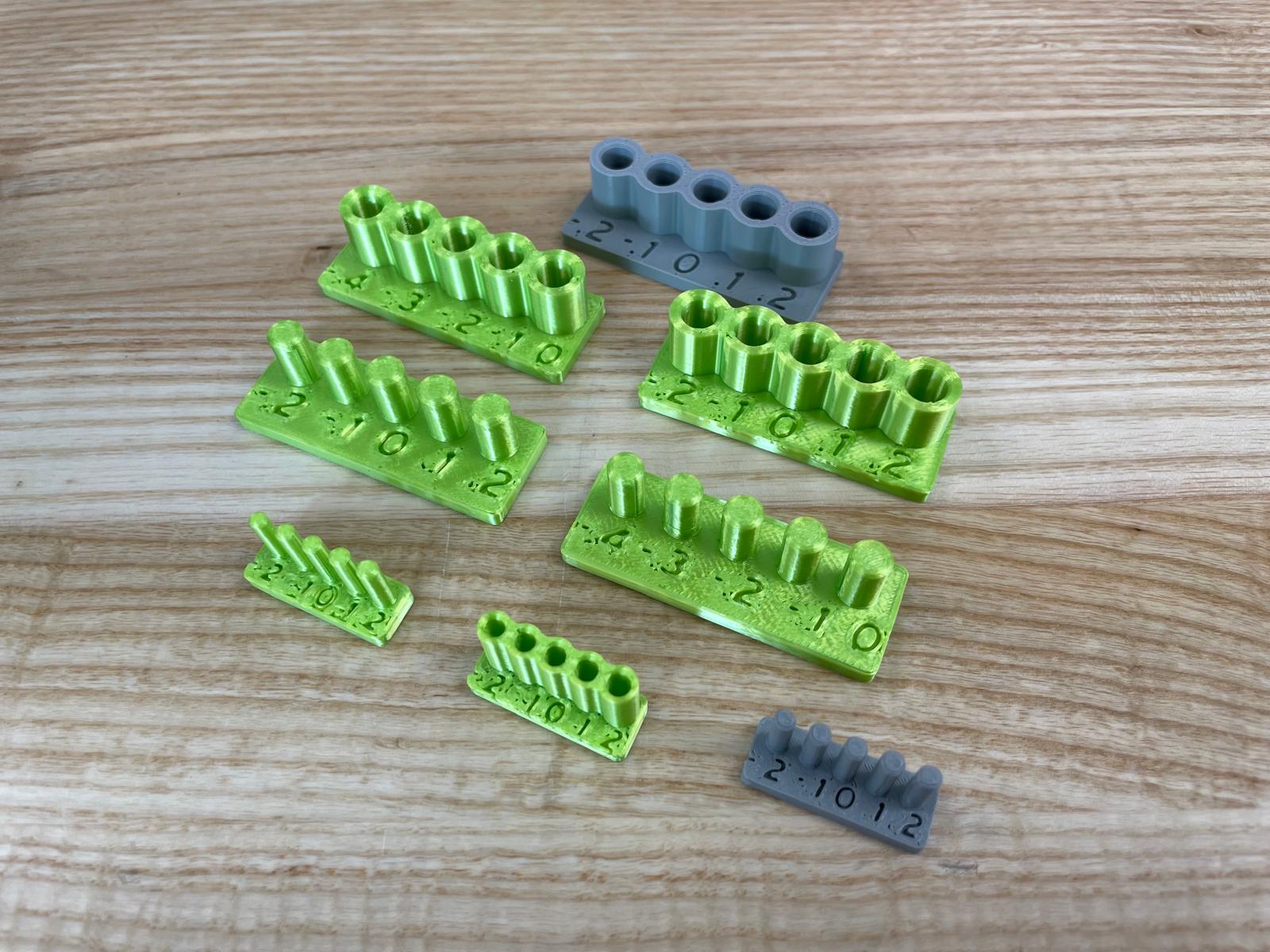 We did a number of tests to explore the fitness of our 3D printers. We made sample parts related to overhang performance, thickness, accuracy and press fit.