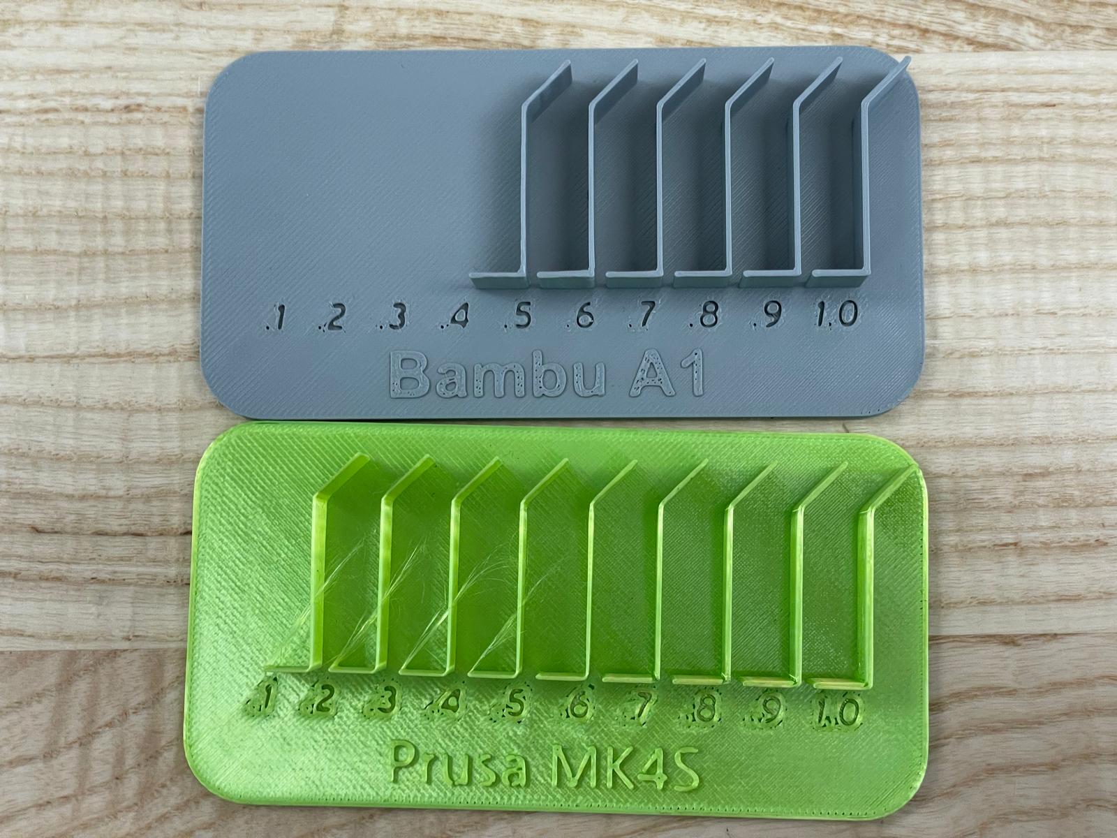 These tests were performed on both Prusa MK4S and Bambu A1 printers with PLA filament.