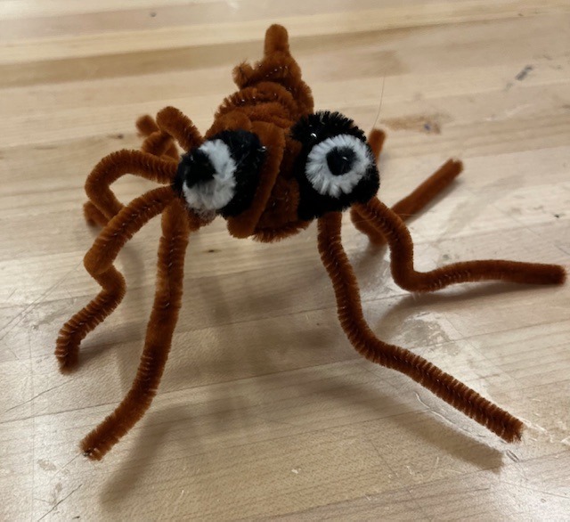 The process for designing the spider was incredibly simple and required very little effort. We took pipe cleaners and wrapped them around each other to make a body, then we took a small amount of glue and used it to attach the eyes. Say hi to Fil the Spider! Fil is a very mean spider who loves to scare people. His favorite food is nachos with flies.