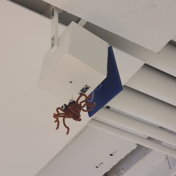 We created a machine that drops a spider from the ceiling whenever motion is detected. The electronic hardware for this project included the Arduino Uno, an ultrasonic sensor, and the NEMA 17 stepping motor.
