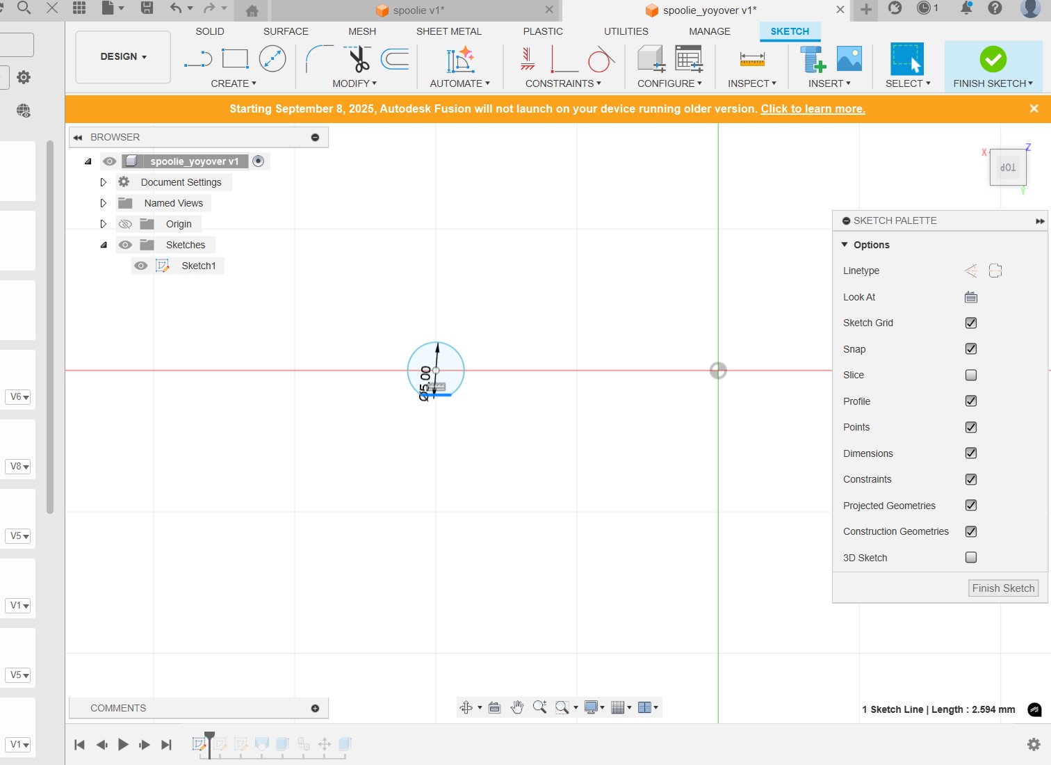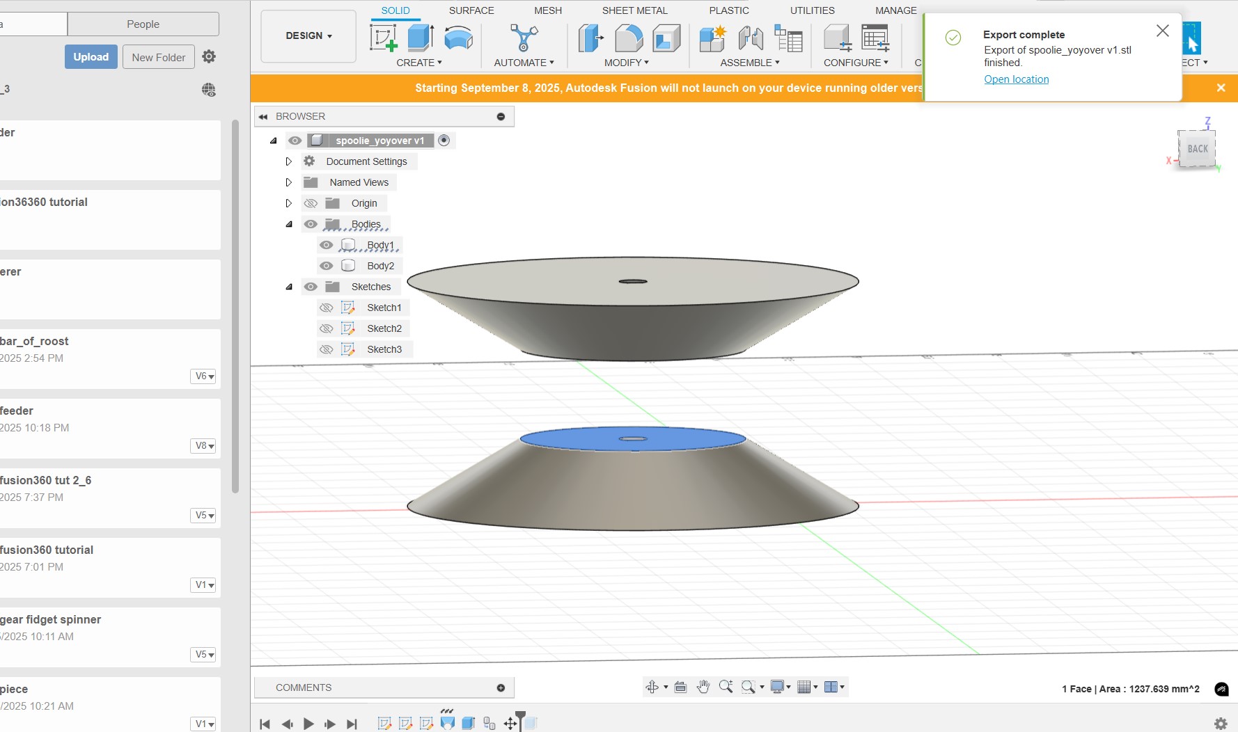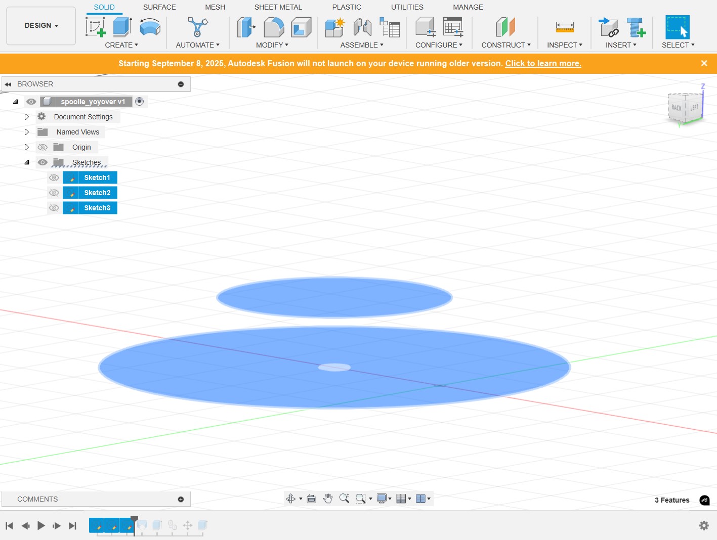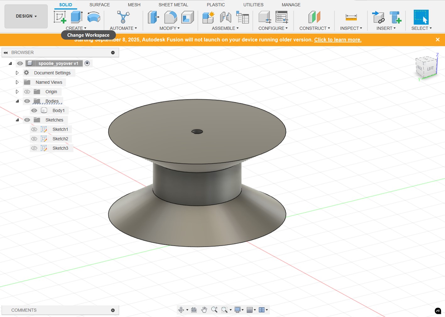We copied that body and rotated it 180 degrees. Extrude the smaller circle at the bottom, which is where the string will rotate around.